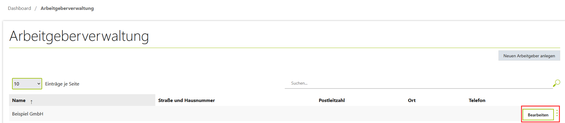 Wenn Sie vom Dashboard aus die Arbeitgeberverwaltung öffnen