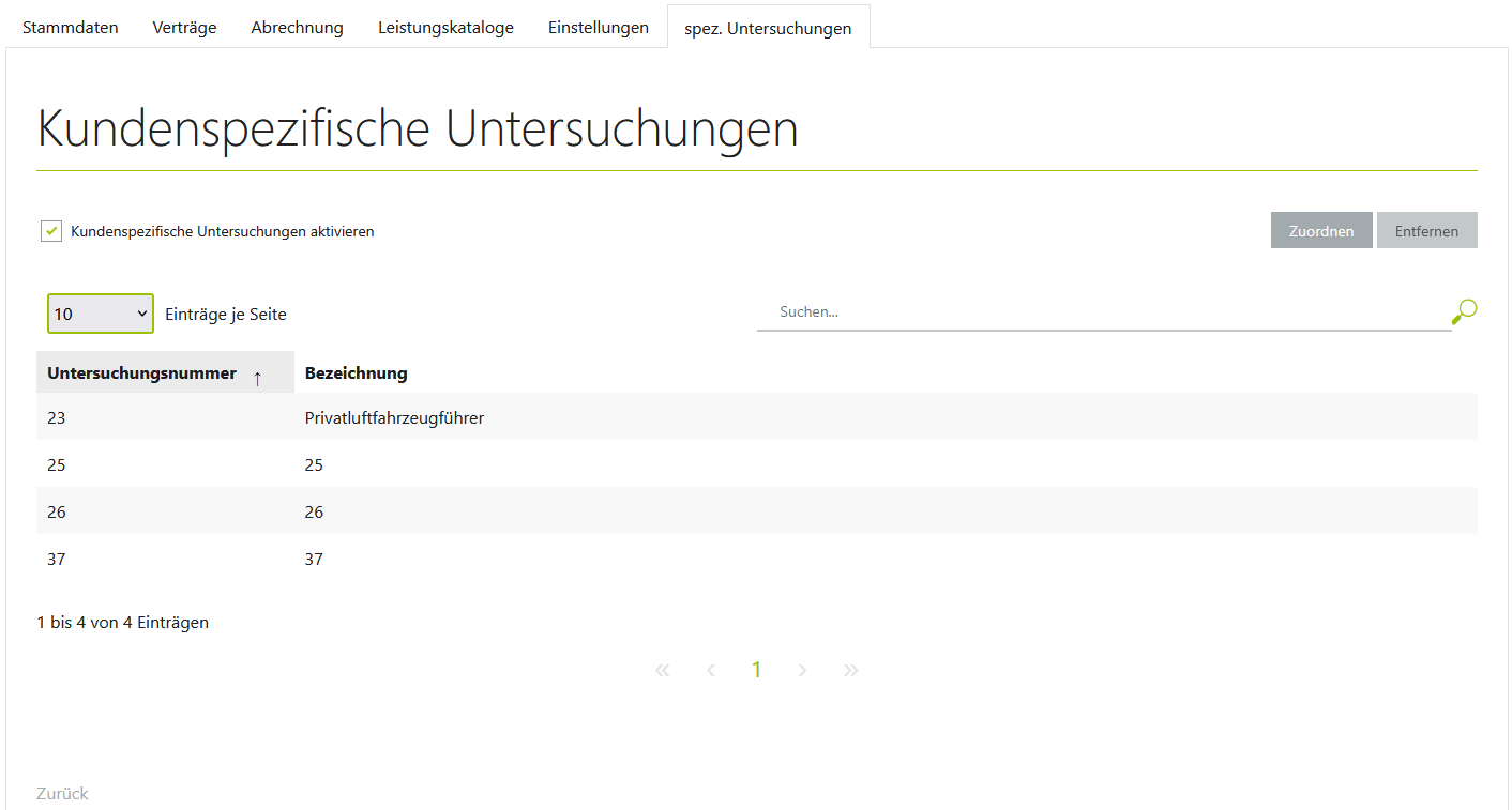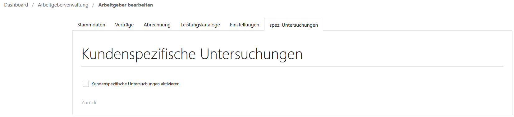 so finden Sie hier eine neue Registerkarte spez. Untersuchungen mit der Einstellungsmöglichkeit Kundenspezifische Untersuchungen aktivieren: