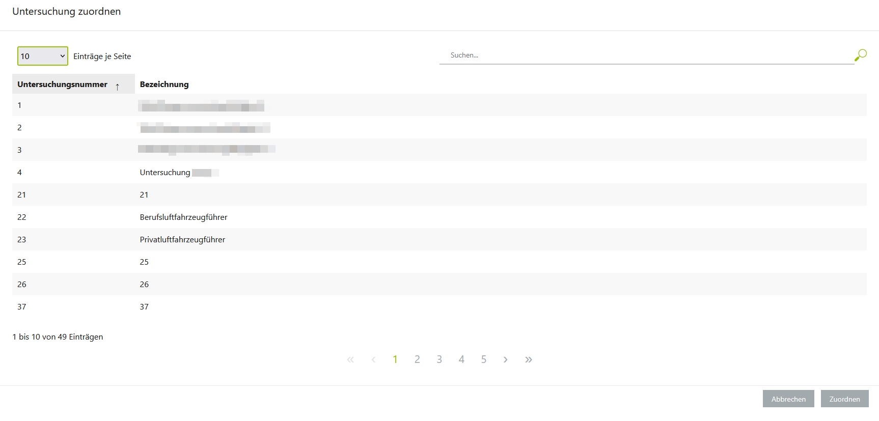 Über die Schaltfläche Zuordnen erhalten Sie eine Übersicht der zur Verfügung stehenden Untersuchungen: