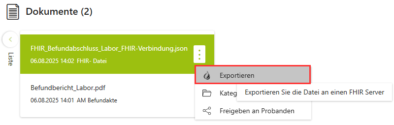 Wenn der Anwender die anschließend erstellte FHIR-Datei exportieren möchte,