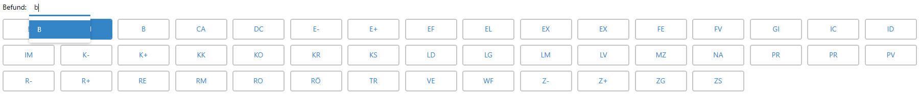 Wird mit der Tab-Taste hin und her navigiert und beispielsweise mit Enter die Schaltfläche Weiterer Befund bestätigt, so wird ein neuer Befund geöffnet und das Procedere beginnt von vorne.