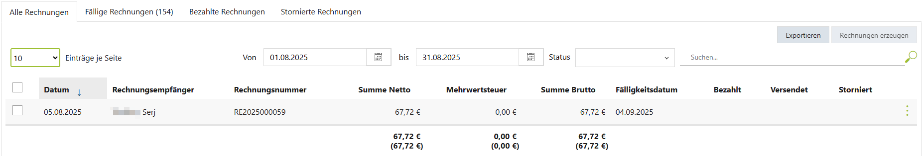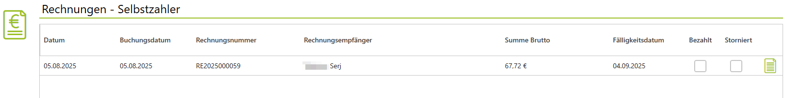 Auch in sOne Web wird die Rechnung entsprechend angezeigt: