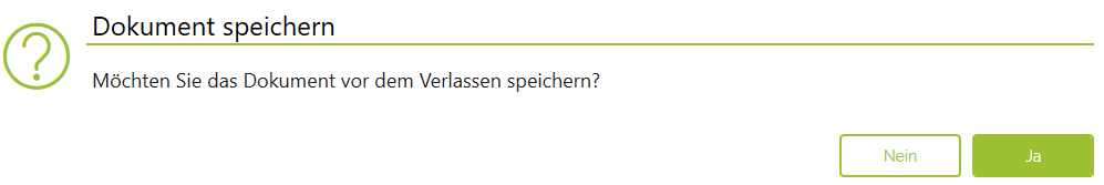 Wird das Fenster über das X geschlossen, so erfolgt eine Abfrage, ob das Dokument abgespeichert werden soll.