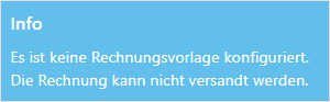 Haben Sie generell keine Rechnungsvorlage konfiguriert, so erscheint die Meldung, dass die Rechnung nicht versendet werden kann: