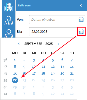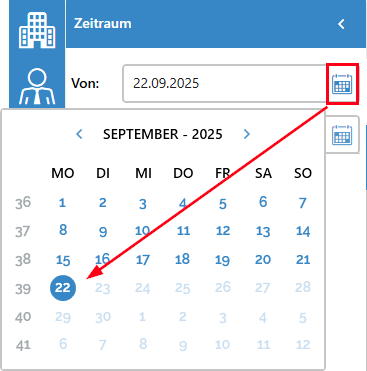 Bei der seitlichen Filterung des Von- und Bis-Zeitraums, können Sie keinen Tag größer als das heutige Tagesdatum auswählen: