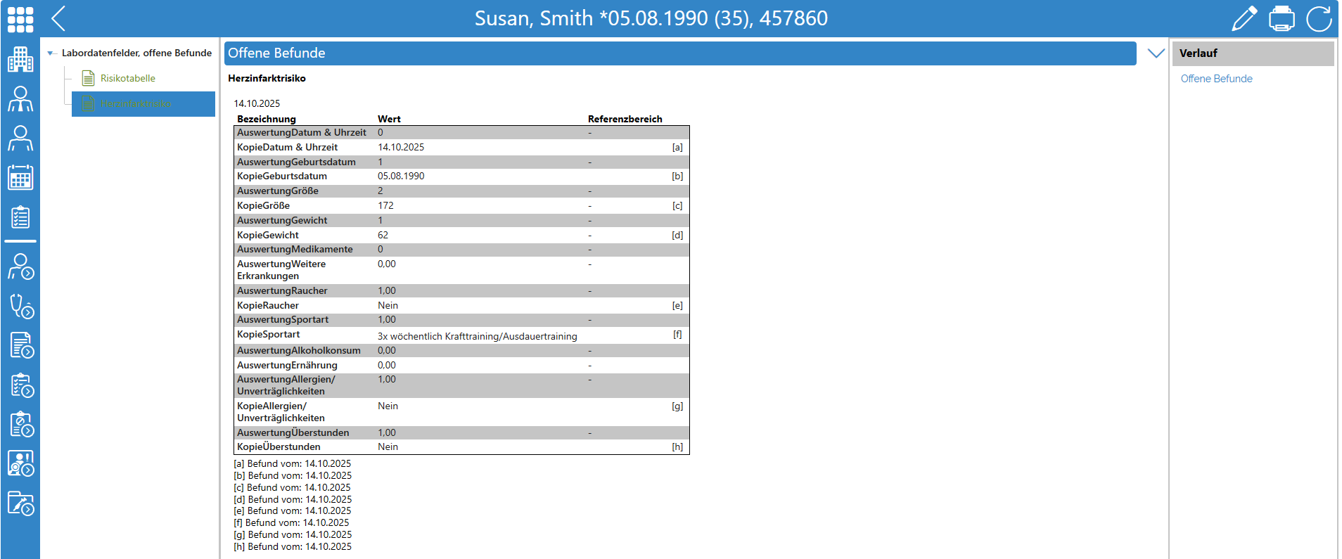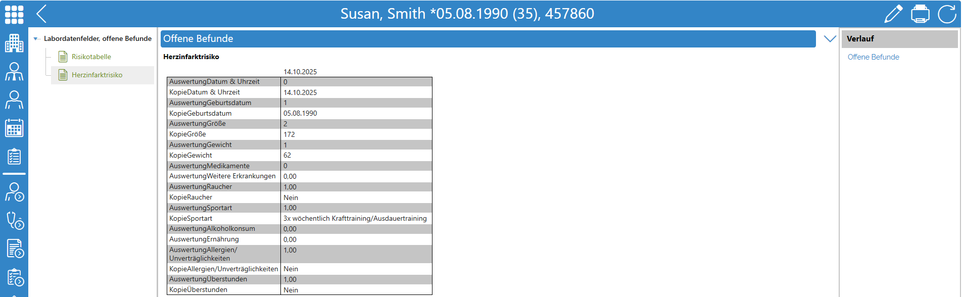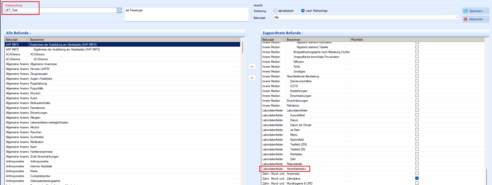 Der Befundstruktureintrag vom Typ Auskunftsverfahren kann zu jeder Untersuchung zugeordnet werden (Daten -> Standardtabellen -> Befunde -> Zugeordnete Untersuchungen).