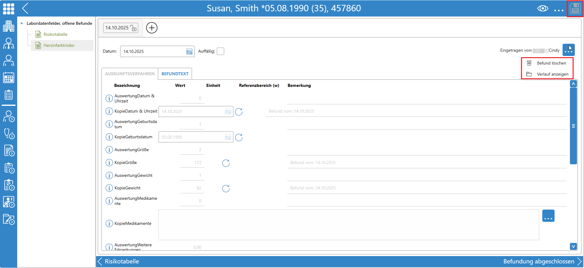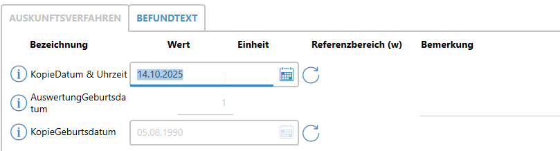 Hinweis: Die Registerkarte Befundtext ist read only. D.h. beim Klick in das Feld des Befundtextes passiert nichts, man kann nichts hineinschreiben.
