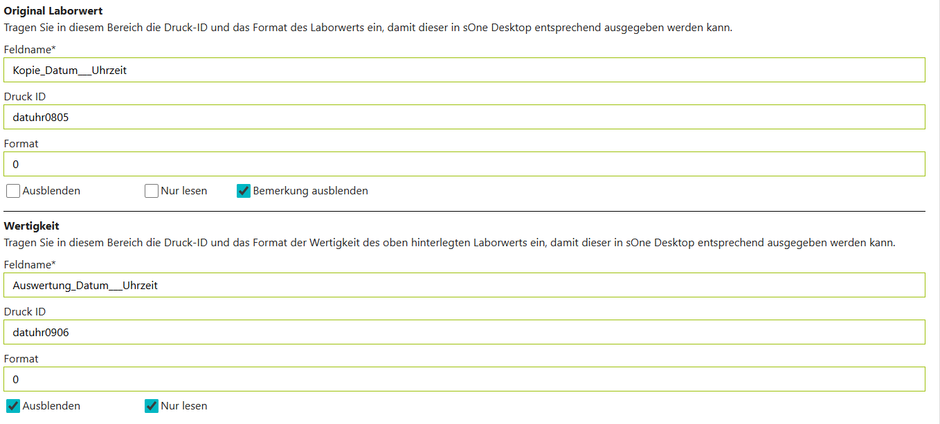 Die Bemerkung zum Laborwert wird in sOne Desktop ausgeblendet, wenn dies entsprechend in sOne Web aktiviert wurde.