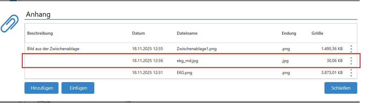 In der Befundung erscheint rechts eine neue Spalte "Anhang".