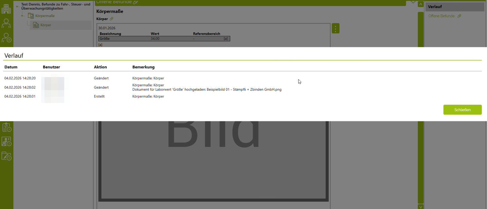 • Zu einem Laborwert, z. B. "Größe", wird ein Bild hochgeladen.