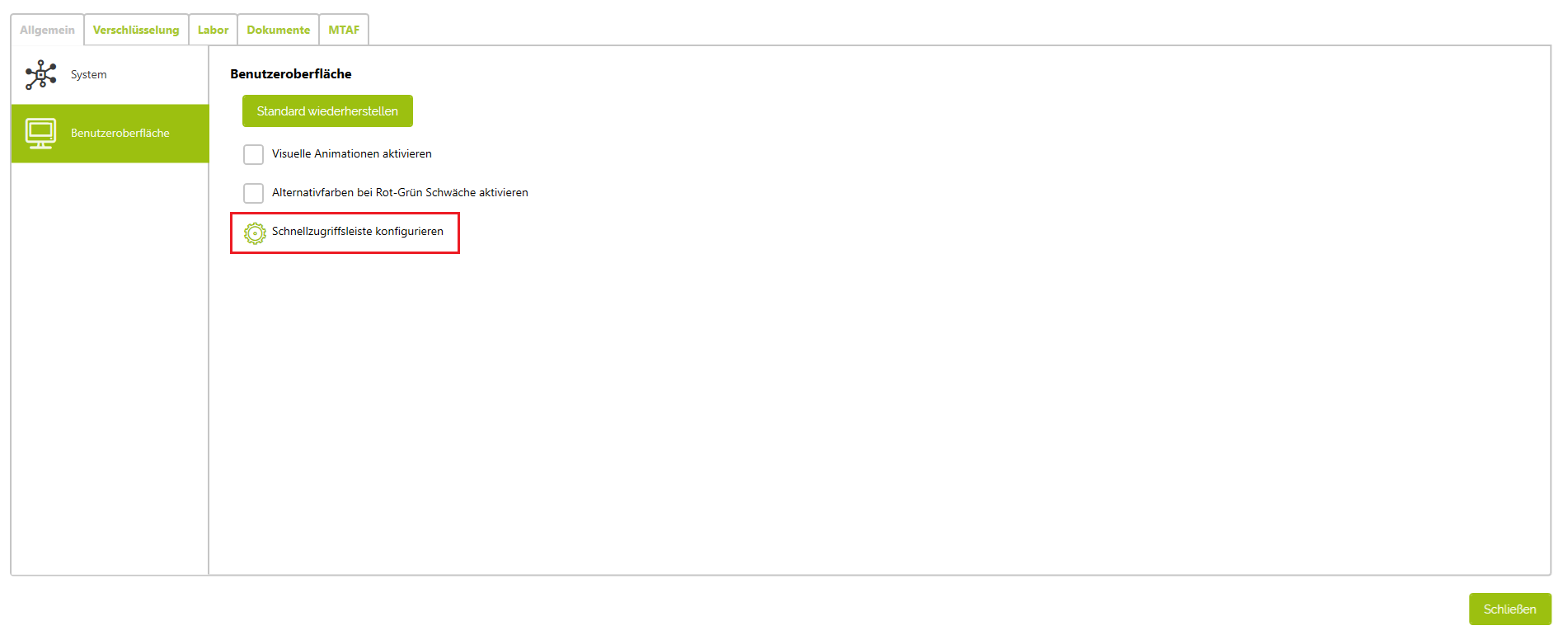 In den Einstellungen → Benutzeroberfläche kann die Option „Schnellzugriffsleiste konfigurieren“ gewählt werden.
