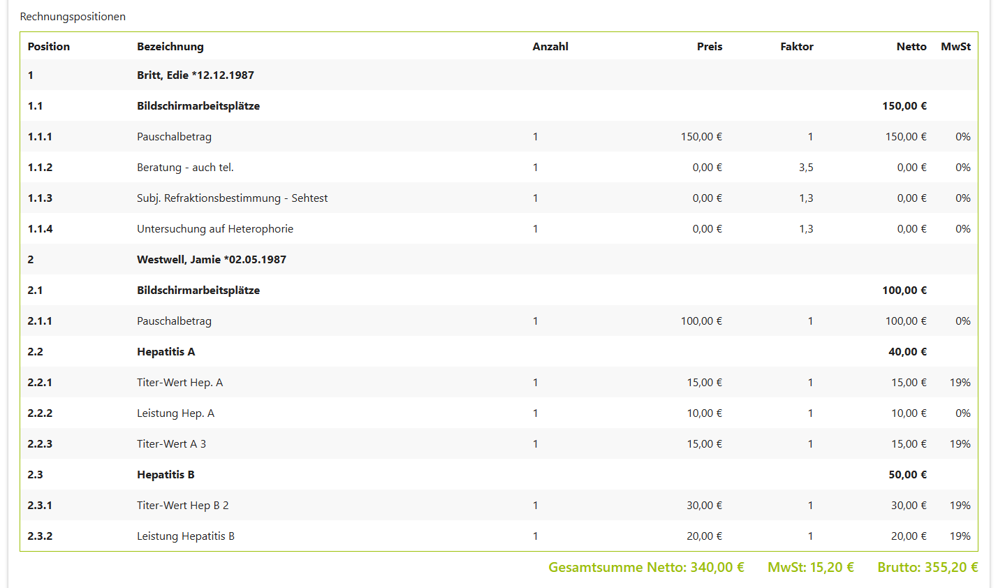 Es ist ab sofort möglich Titer‑Werte korrekt und vollständig auf der Rechnung auszugeben.