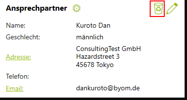 Es gibt jetzt die Möglichkeit die Ansprechpartner direkt im Termin zu verwalten. Neben dem Bearbeiten‑Icon steht nun ein Papierkorb‑Icon, um einen Ansprechpartner zu entfernen.