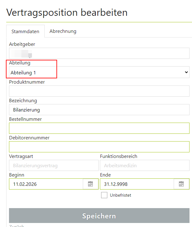 Ab sofort kann an einer Vertragsposition eine Abteilung hinterlegt werden.